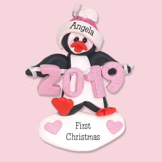 2019 Baby's First Christmas Ornament, Personalized 1st Christmas Ornament, Penguin, Handmade Polymer Clay, Personalized Ornaments