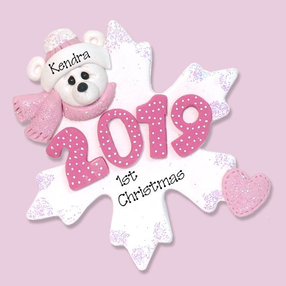 2019 Baby's First Christmas Ornament, Personalized 1st Christmas Ornament, Polar Bear, Handmade Polymer Clay, Personalized Ornaments