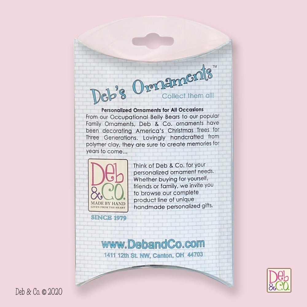 All polymer clay ornaments are hand made and may vary from the photograph. Personalization is also hand done. We do a very good job on personalizing but because it is done by hand it cannot be perfect. Personalization in photo is computer generated.