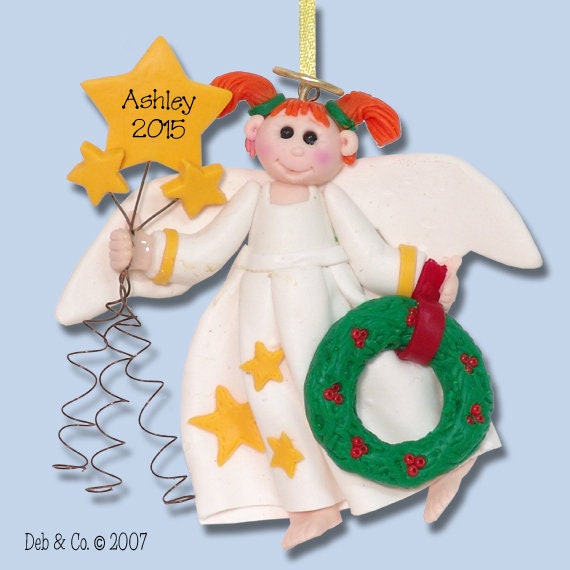 Angelina Angel w/Red Hair HANDMADE Polymer Clay Personalized Christmas Ornament