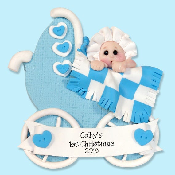 Baby's 1st Christmas Personalized Baby Boy Ornament - Baby's First Christmas for Boy - HANDMADE Polymer Clay Ornament - Custom Ornaments