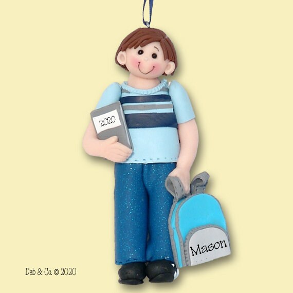 Back to School / 1st Day Boy Personalized Christmas Ornament - Handmade Polymer Clay - Limited Edition in Custom Gift Box
