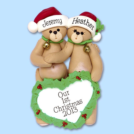 Bear Family of 2 HANDMADE POLYMER CLAY Personalized Couples Christmas Ornament