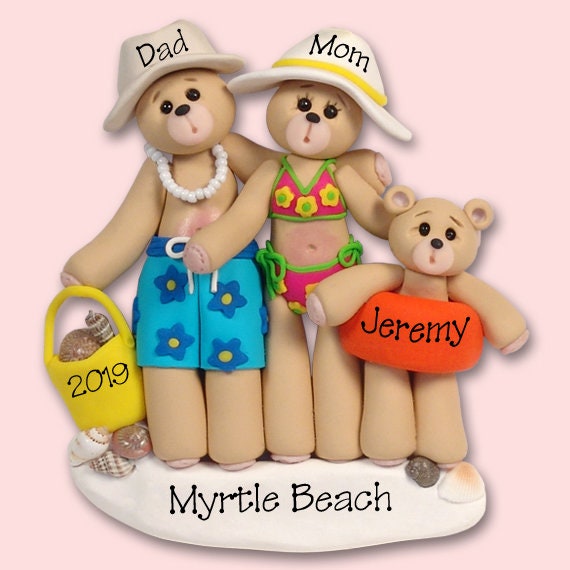 Belly Bear Beach Family of 3 Handmade POLYMER CLAY Personalized Christmas Ornament