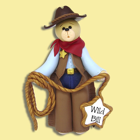Giddy Up! What a great personalized ornament to give your special Cowboy! This adorable Belly Bear Cowboy is ready to round up some cows. He is extremely detailed. He is handmade from polymer clay and is designed by me. AWESOME!!