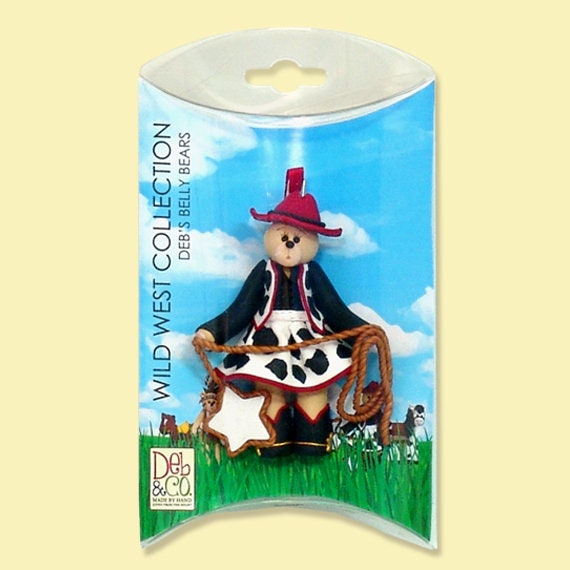 Giddy Up! What a great personalized Christmas ornament to give your special Cowgirl! This adorable Belly Bear Cowgirl is ready to round up some cows. She is extremely detailed. She is handmade from polymer clay and is designed by me. AWESOME!! She comes in this cute little custom pillow box.
