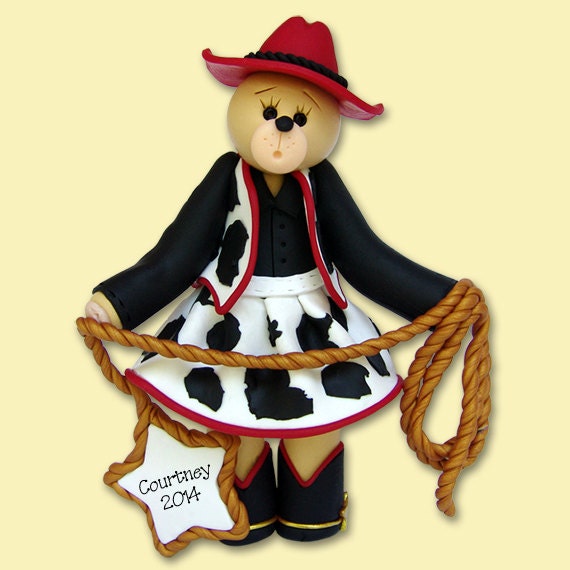 Belly Bear Cowgirl HANDMADE Polymer Clay Ornament - Personalized Christmas Ornament in Custom Gift Box