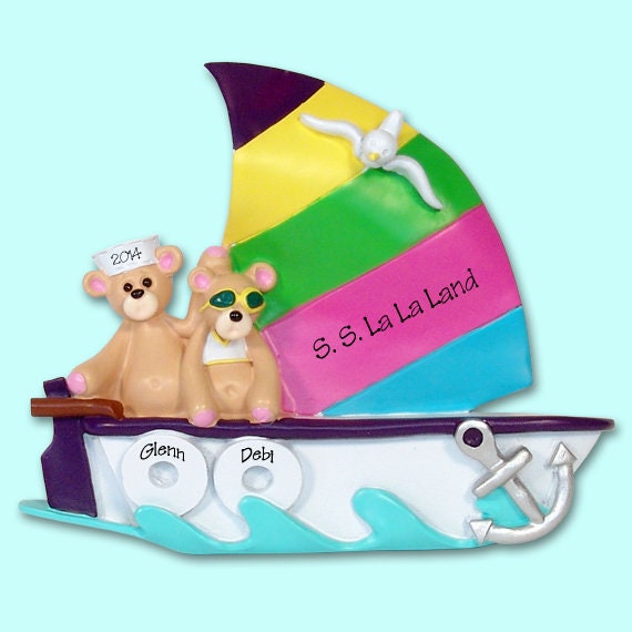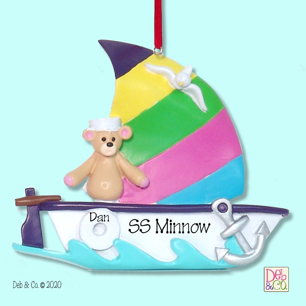 Belly Bear in Sailboat Hand Painted Personalized Christmas Ornament