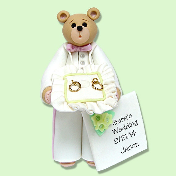 Belly Bear Personalized RING BEARER Ornament, Personalized Wedding Ornaments, HANDMADE Polymer Clay, Personalized Wedding Party Gifts