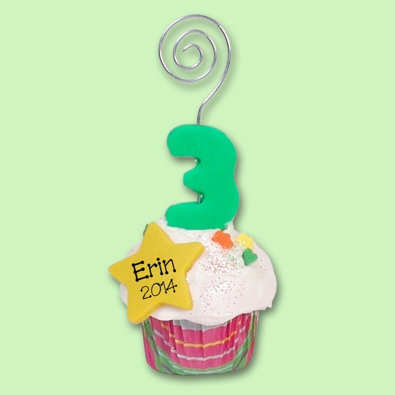 Birthday 3 Year Cupcake Photo Holder / Place Card Holder - HANDMADE Polymer Clay