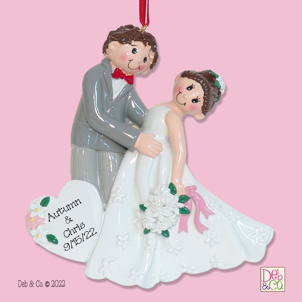 Bride & Groom Hand Painted RESIN Personalized WEDDING Ornament