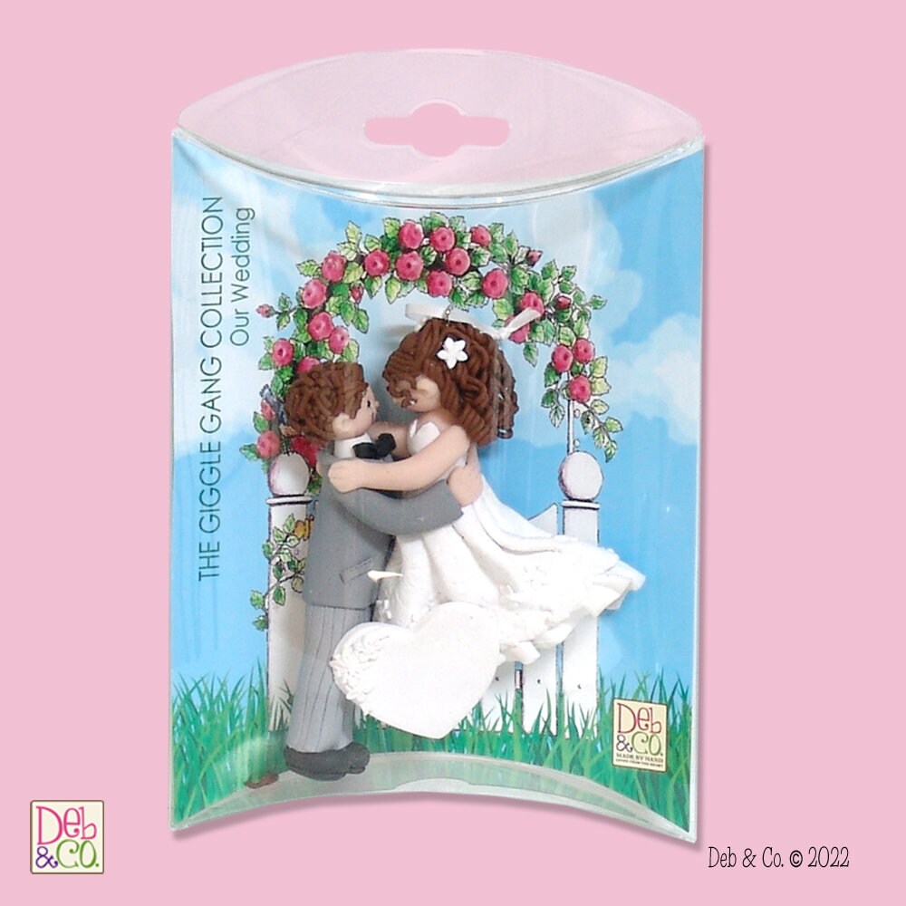 This is a brand-new Bride & Groom Ornament. This ornament is perfect for any newly married or to be married couple. Also great for "OUR 1ST CHRISTMAS" It is designed and handmade by me from POLYMER CLAY. Comes complete with a hook and satin ribbon for hanging and is packaged in this cute custom wedding pillow box.
