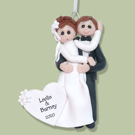 Bride & Groom Handmade Polymer Clay Personalized WEDDING Ornament - Limited Edition #12-Custom Gift Box