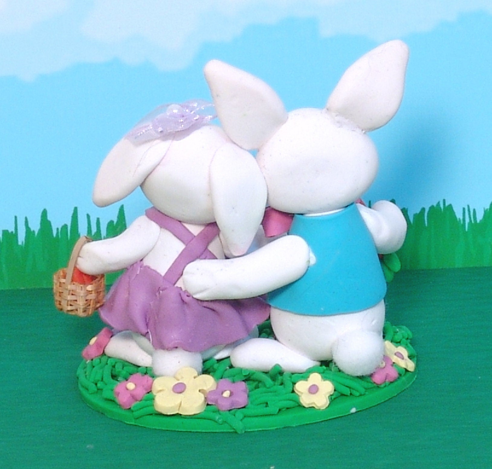 Bunny Rabbit Couple HANDMADE POLYMER CLAY Easter Decor Figurine