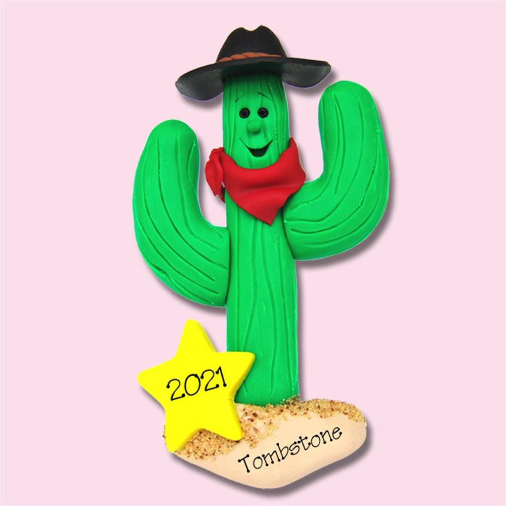 Cactus Cowboy HANDMADE Polymer Clay Personalized Christmas Ornament - Western