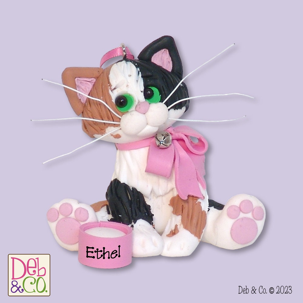 Calico KITTY CAT HANDMADE Polymer Clay Personalized Christmas Ornament - Limited Edition