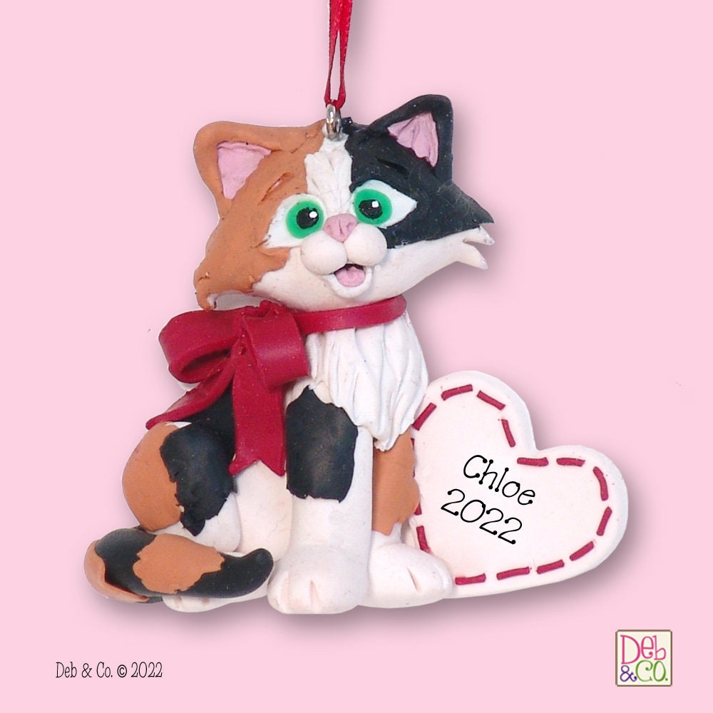 Calico KITTY CAT HANDMADE Polymer Clay Personalized Christmas Ornament - Limited Edition #2
