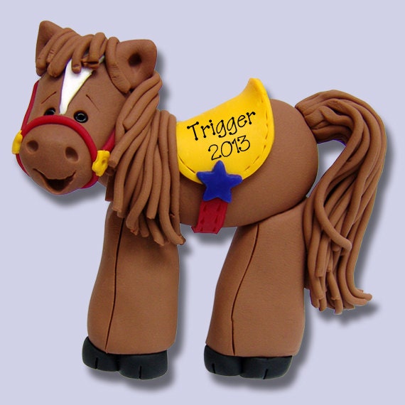 Giddy Up! What a great personalized ornament to give your special horse lover! This cute little brown horse is great for any horse lover or fan of "Country Western" music or just western in general.