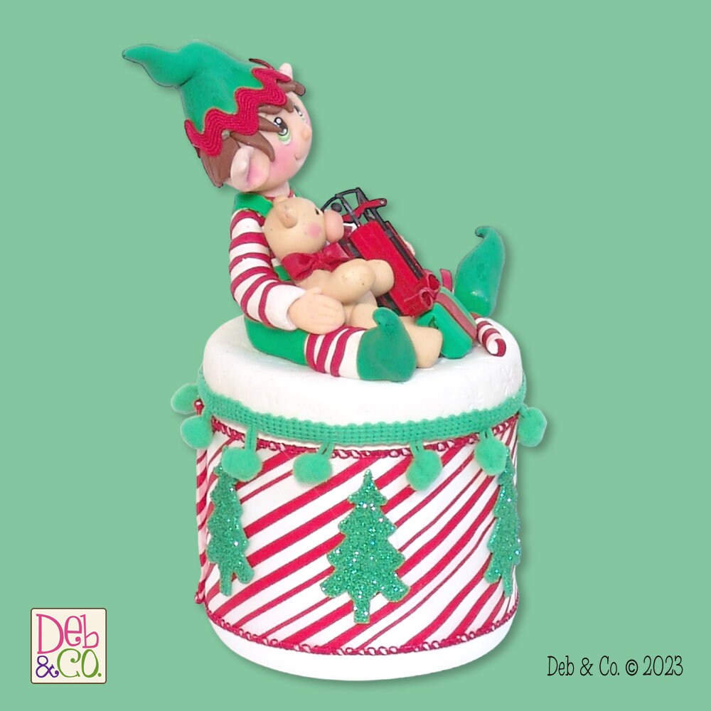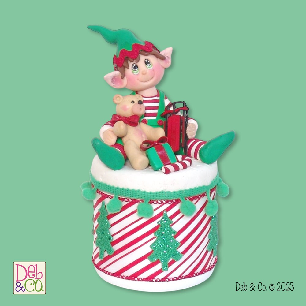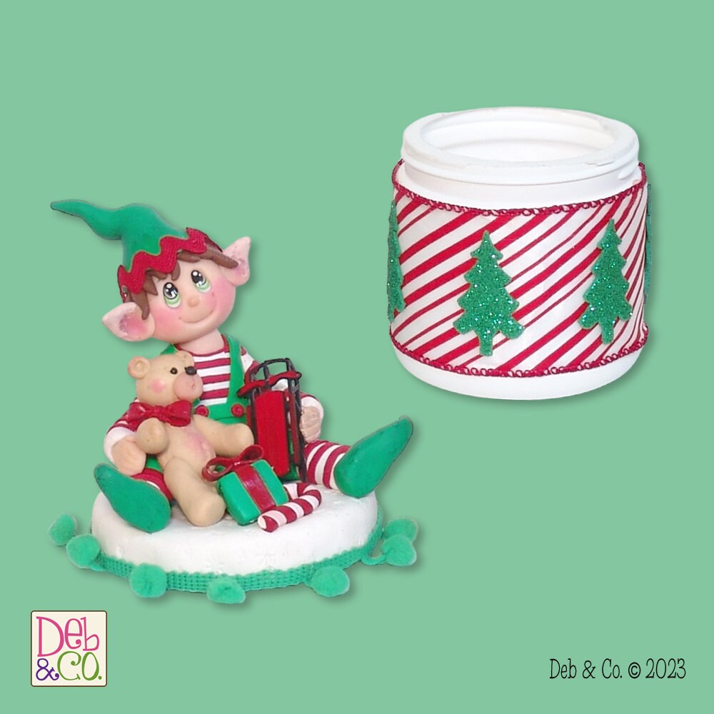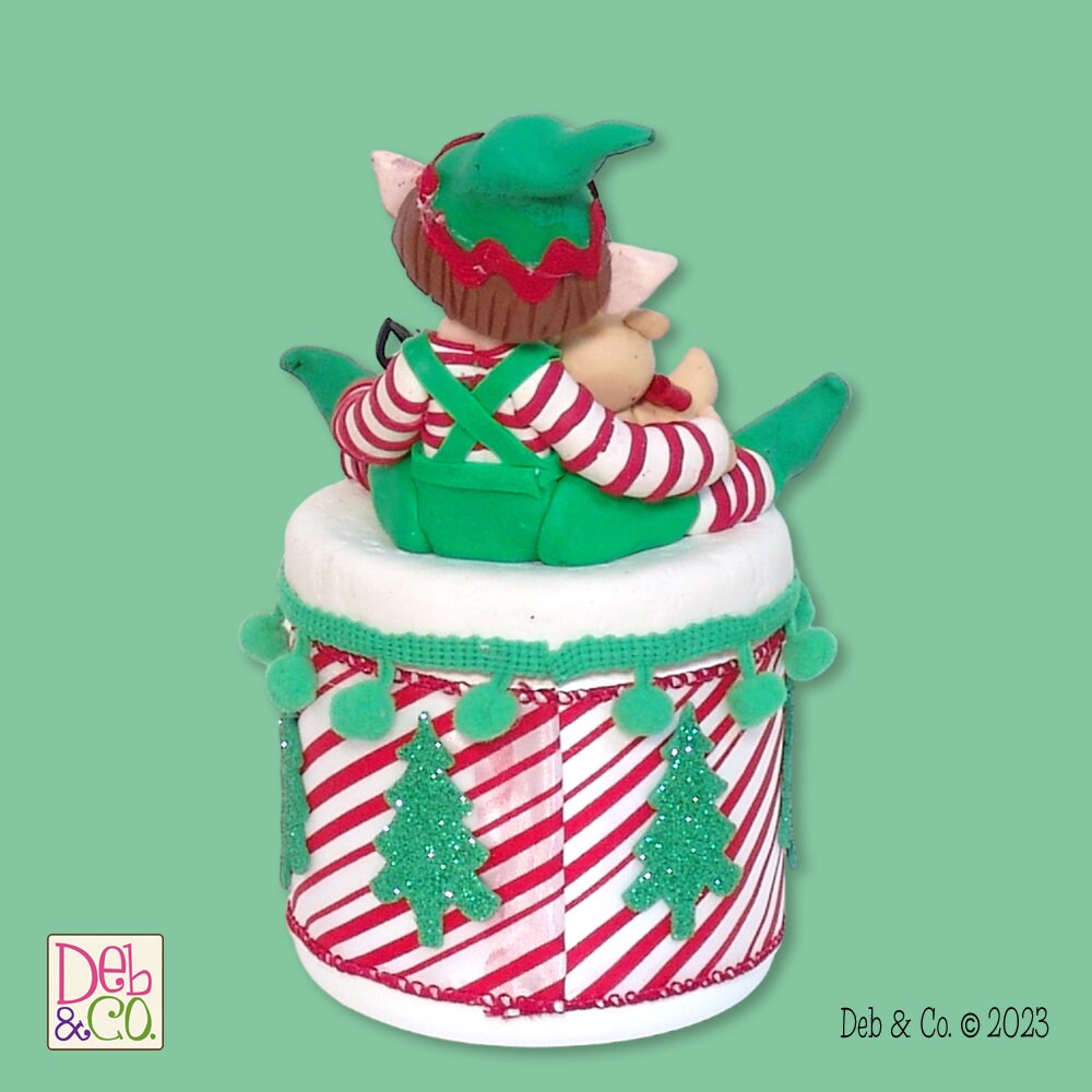 Elf Peppermint Candy or Trinket Jar - Handmade Polymer Clay Christmas Decor