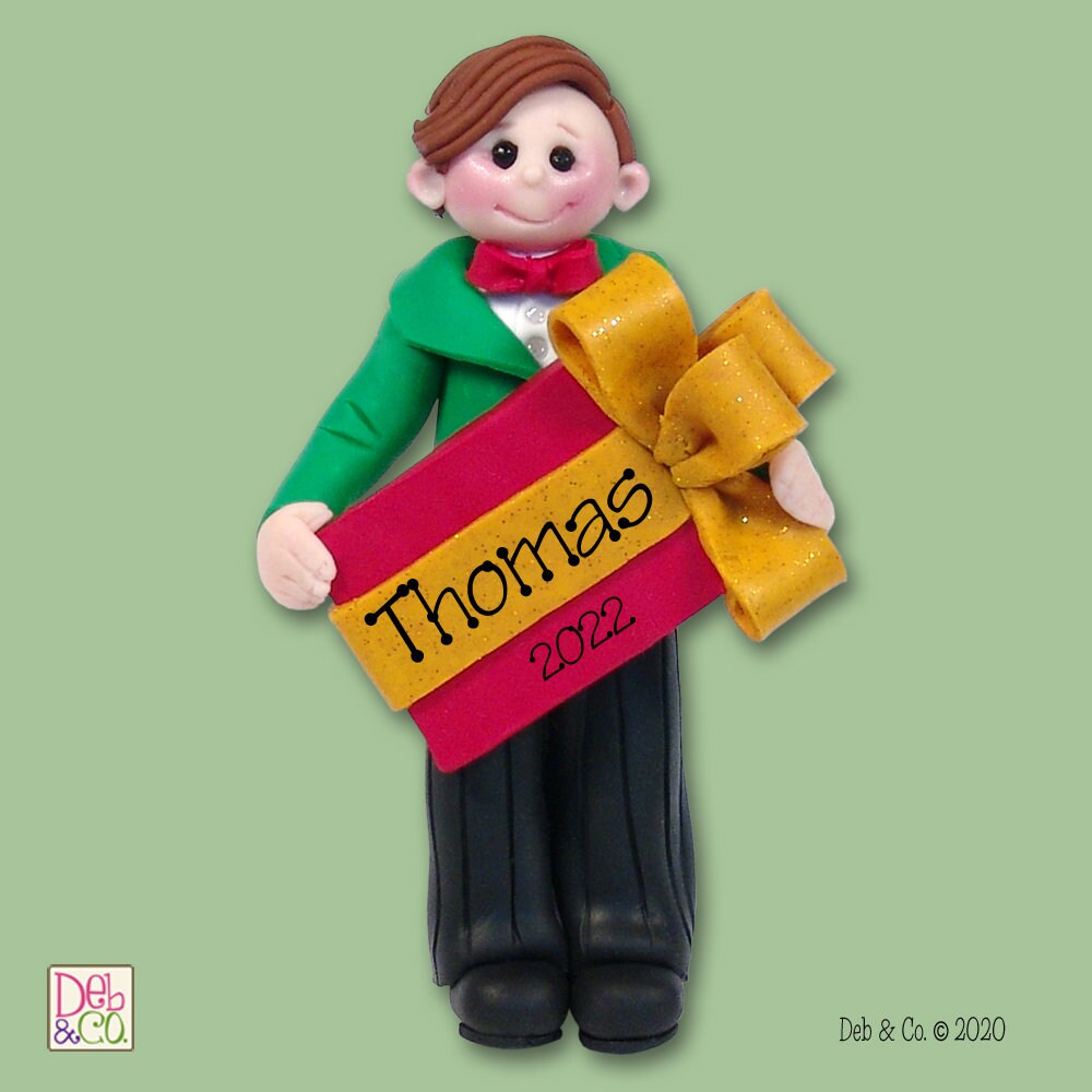 Giggle Gang Boy in Christmas Outfit Handmade Polymer Clay Personalized Christmas Ornament, Little Boy's Gifts, Gift for Little Boy