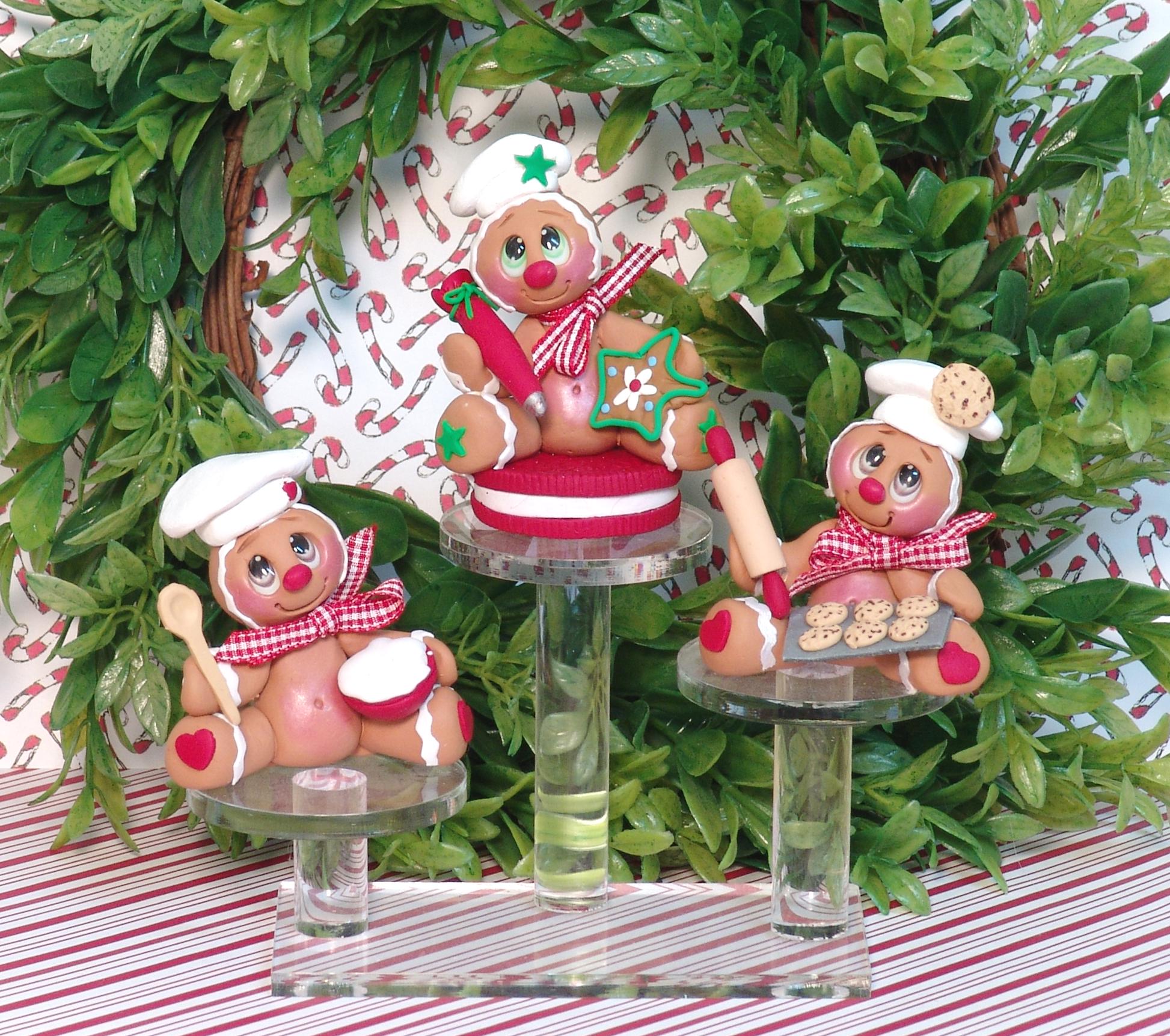Gingerbread Clay Figure with Rolling pin & cookie tray HANDMADE POLYMER CLAY Christmas Figurine