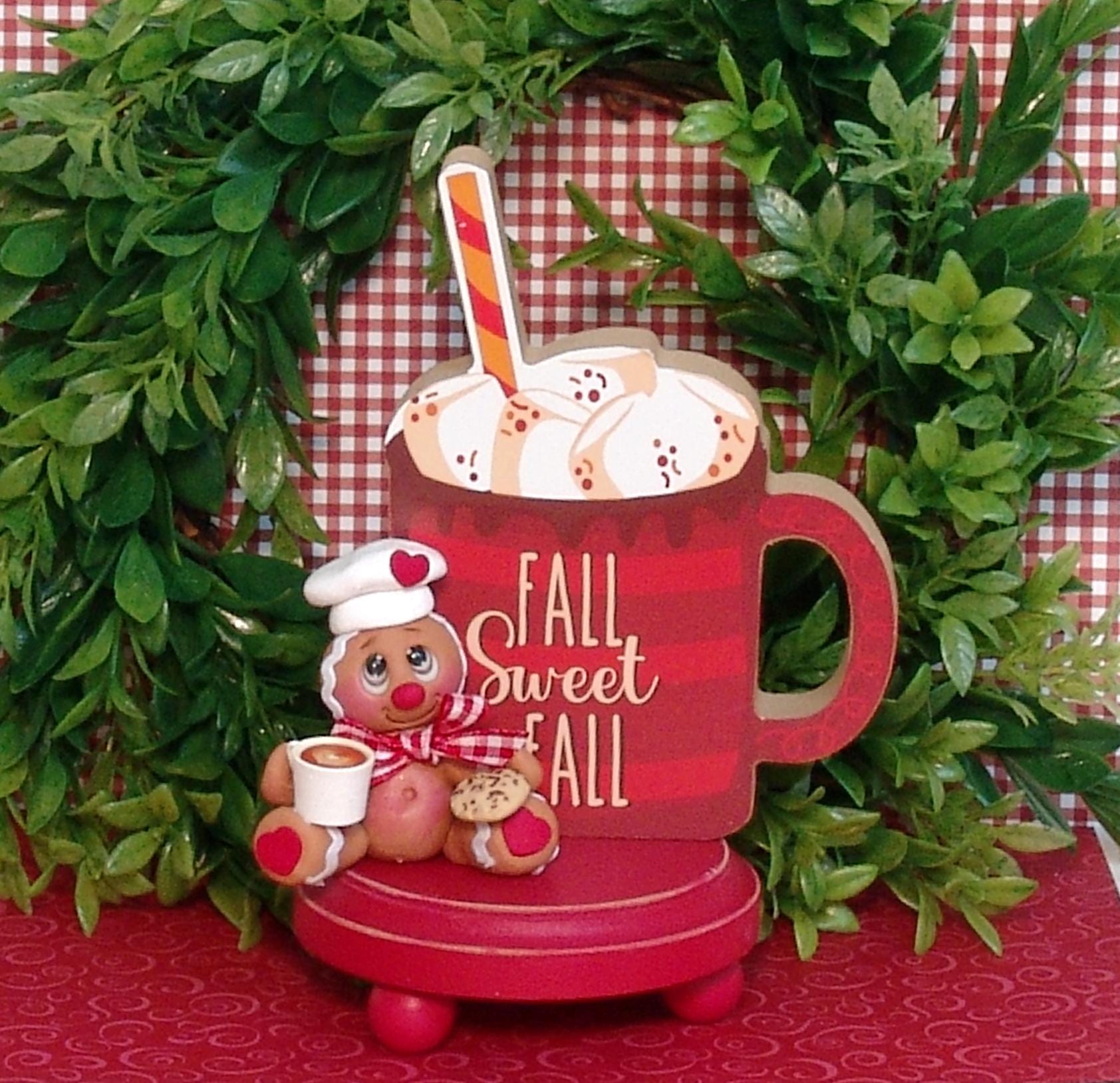 Gingerbread Clay Figurine with Hot Chocolate and Cookie HANDMADE POLYMER CLAY Christmas Figurine - Tiered Tray Decor
