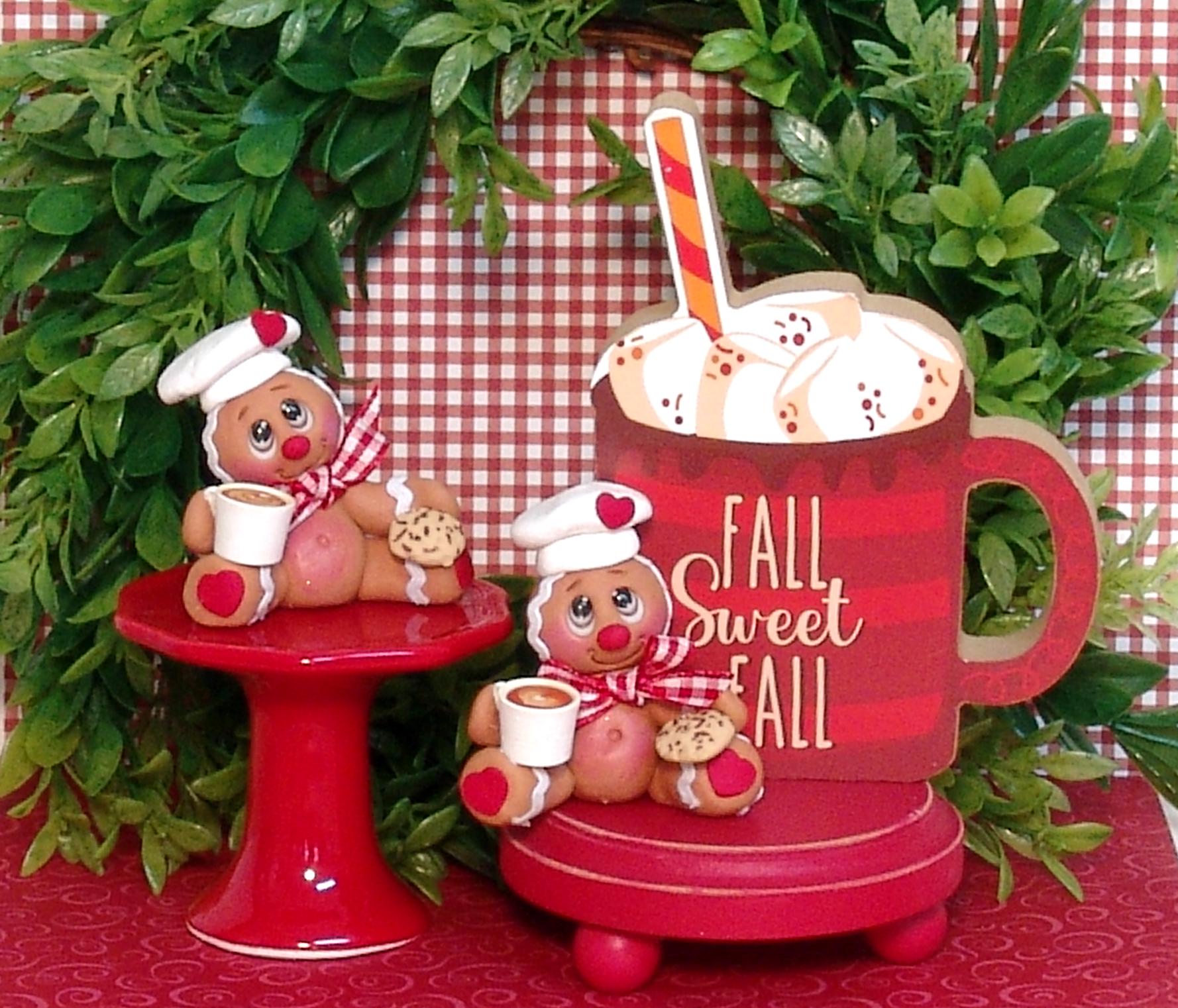 Gingerbread Clay Figurine with Hot Chocolate and Cookie HANDMADE POLYMER CLAY Christmas Figurine - Tiered Tray Decor - 2 Piece Set