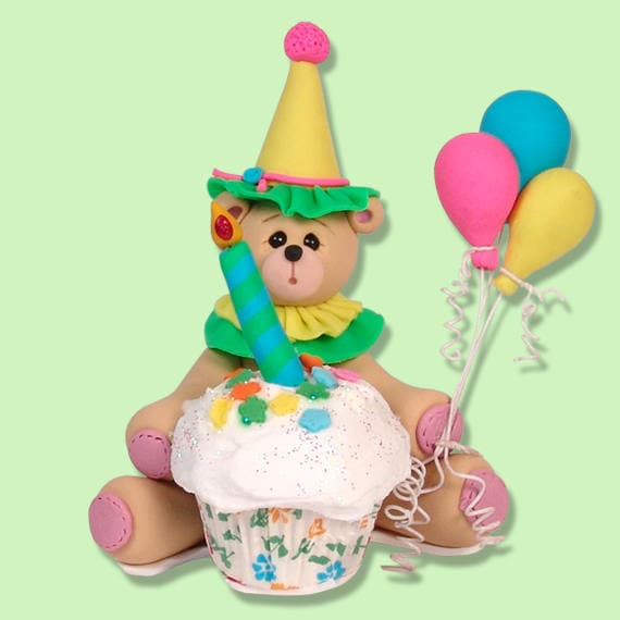 HANDMADE Polymer Clay BIRTHDAY BEAR Figurine - Cake Topper - Limited Edition