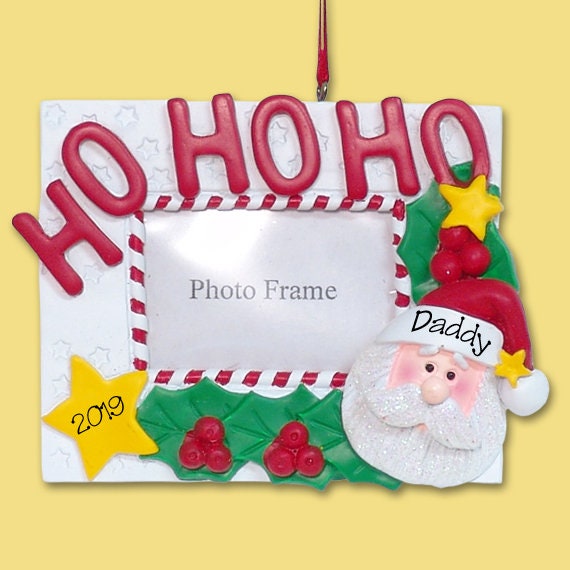 HO HO HO Santa Picture Frame - Personalized Ornament - Handpainted Resin