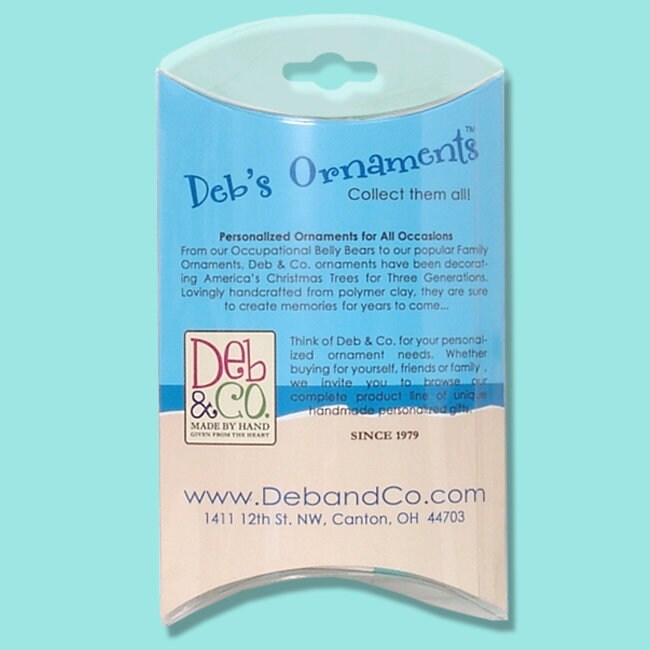 Larry is ready to guide any boats with his glowing happy face. He is handmade from polymer clay and designed by Debi Allison. He comes complete with hooks and satin ribbon for hanging and is packaged in this cute little custom pillow box.