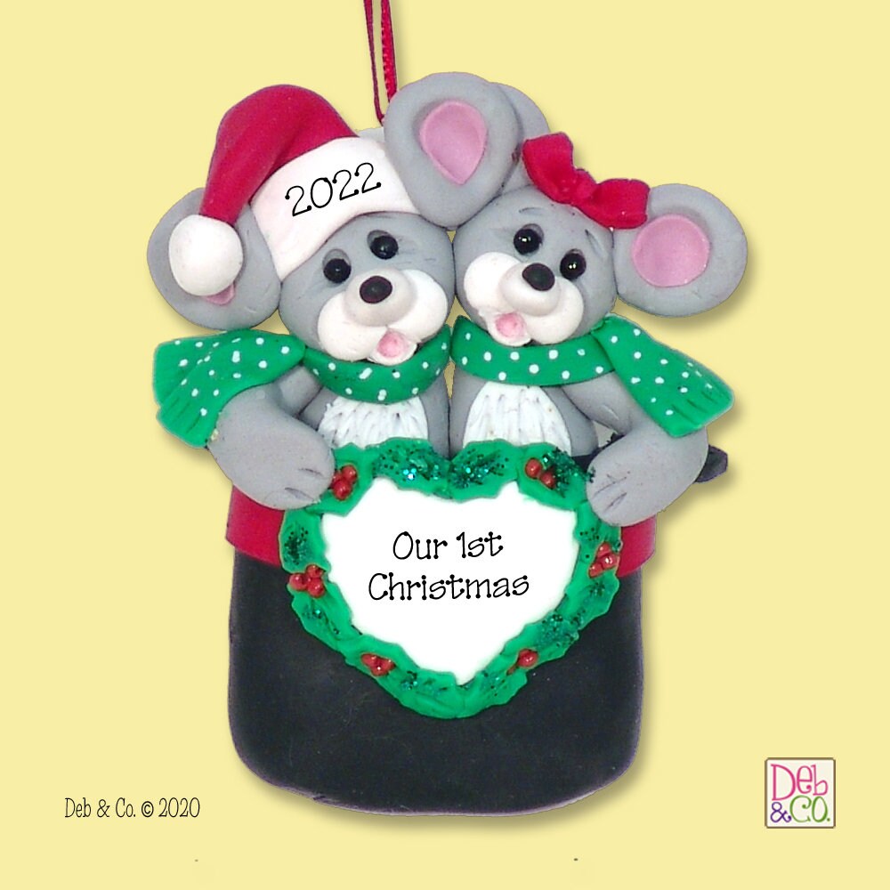 Mouse Couple in Hat HANDMADE POLYMER CLAY Personalized Couples Ornament-Limited Edition