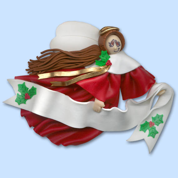 Personalized Angel Ornaments - Red Angel with Brown Hair - Handmade Polymer Clay Personalized Christmas Ornaments -Angel Ornament - ON SALE!