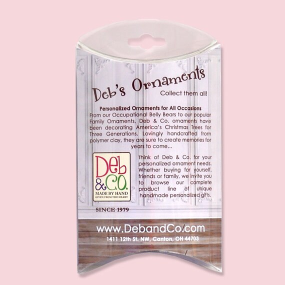 New from my "Belly Bear Collection" , this darling little bear is ready for Christmas eve. All dressed up she has come bearing gifts. This personalized Christmas ornament is wonderfully detailed. The green and red strip is actually polymer clay strips. This ornament took me several hours to make. It may be easily personalized with a name and year. me, It is handmade from Polymer Clay. Comes complete with satin ribbon and hook for hanging and is packaged in this cute little custom pillow box.
