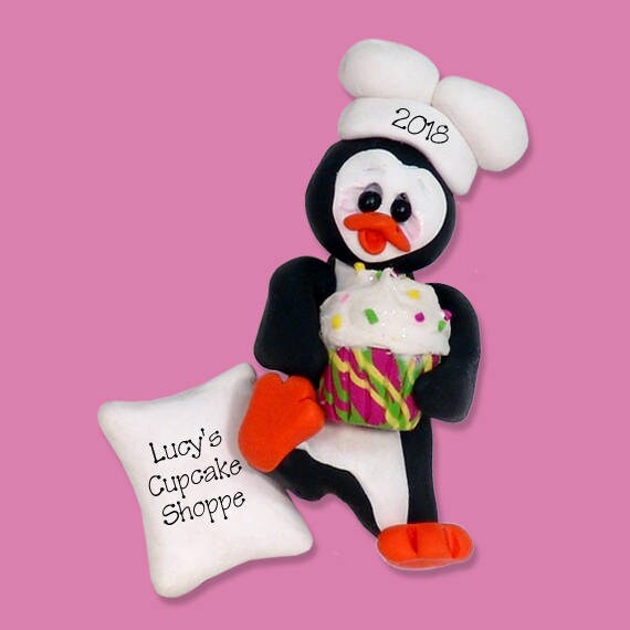 Personalized Christmas Ornaments - Personalized Chef Ornament Petey Penguin Chef /Baker HANDMADE POLYMER Clay Ornament - Custom Ornaments