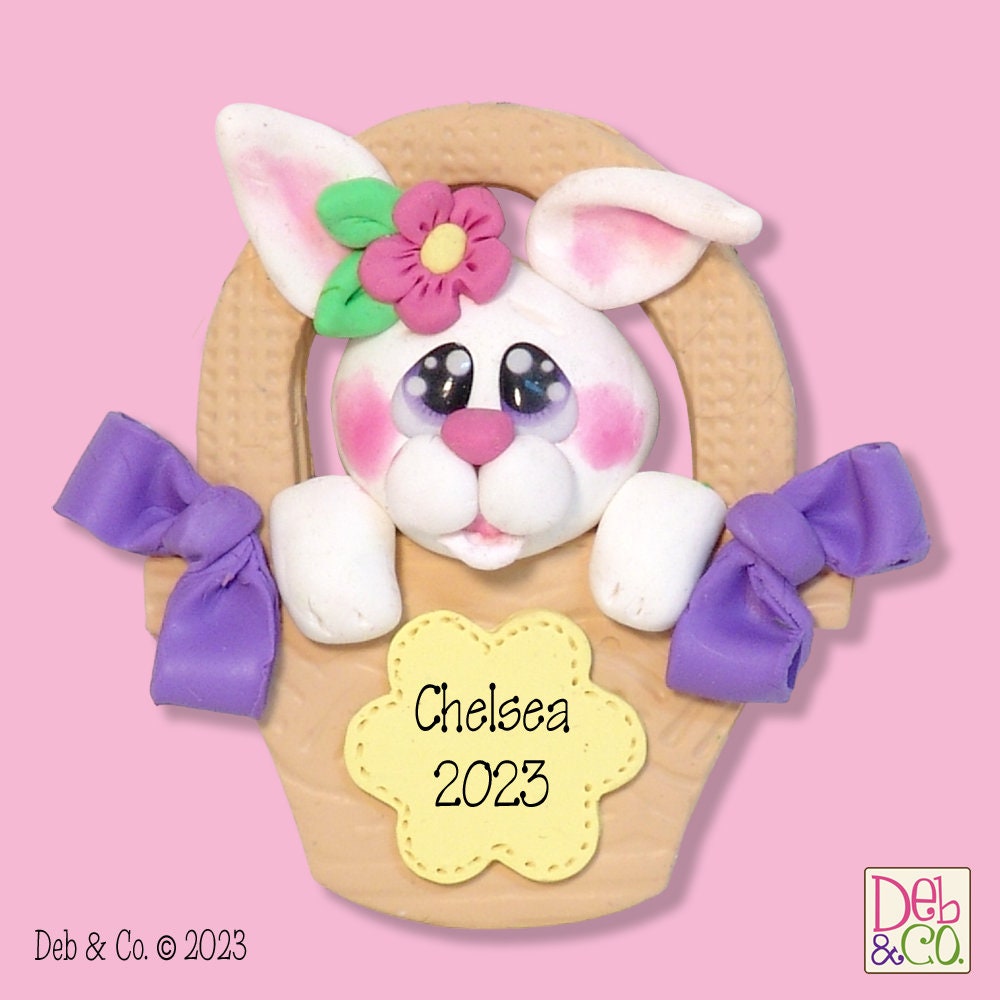 Personalized EASTER BUNNY Ornament Handmade Polymer Clay