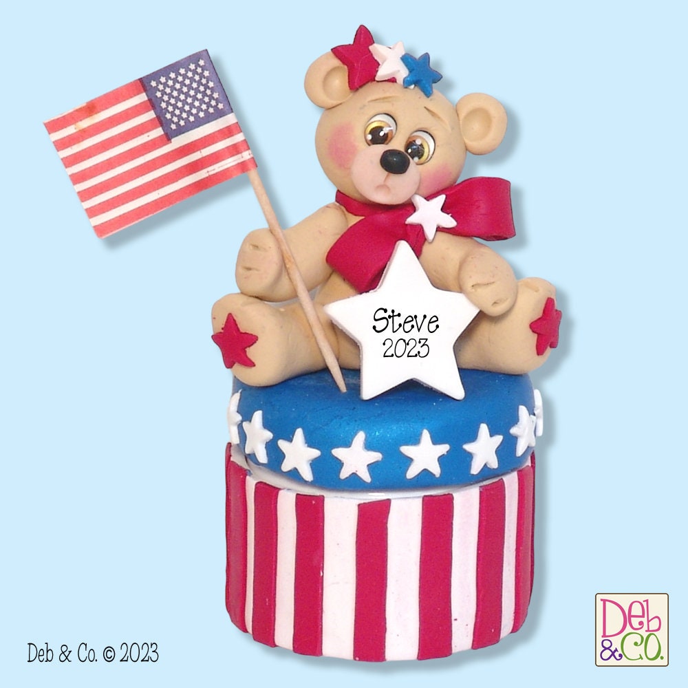Personalized Patriotic Bear Handmade Polymer Clay Container - Treat Jar