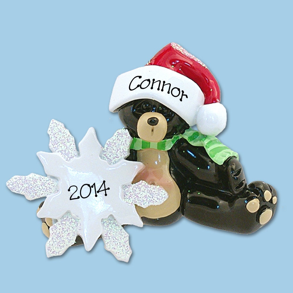 Personalized Sitting Black Bear with Snowflake Christmas Ornament , First Christmas Ornament
