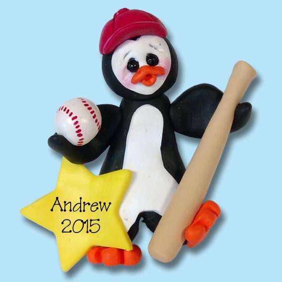 Petey Penguin Baseball Player -Handmade Polymer Clay - Personalized Christmas Ornament - Limited Edition
