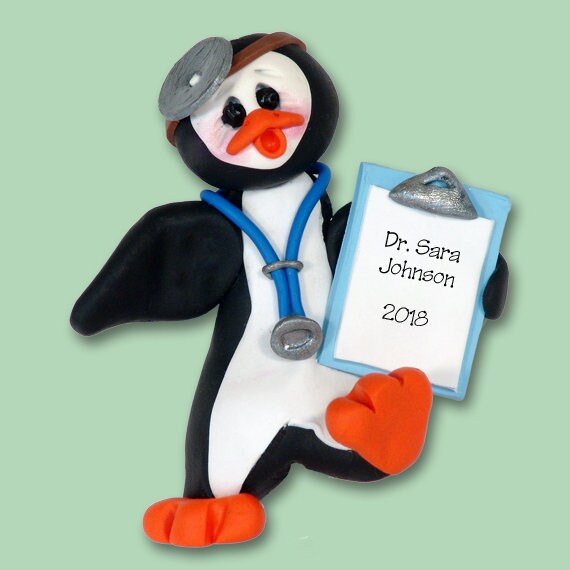 Petey Penguin Doctor HANDMADE POLYMER Clay Ornament - Limited Edition - Personalized Christmas Ornament