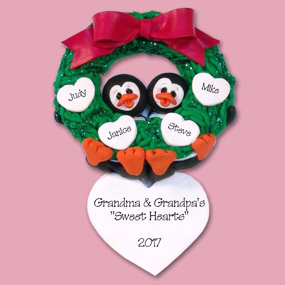 Petey Penguin Personalized Grandparents Ornament, Ornament for 4 Grandchildren, Polymer Clay HANDMADE Christmas Ornaments, Custom Ornaments