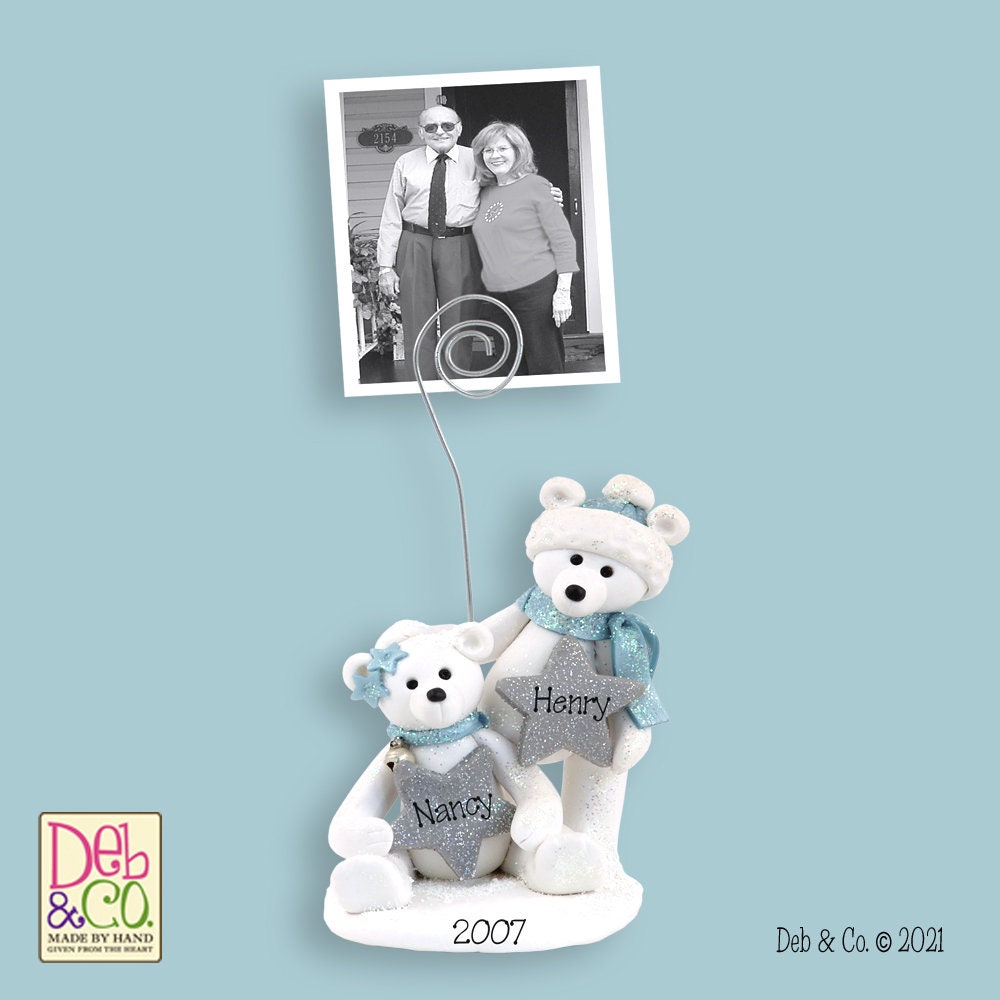 Polar Bear Couple Photo Holder / Place Card Holder - HANDMADE Polymer Clay