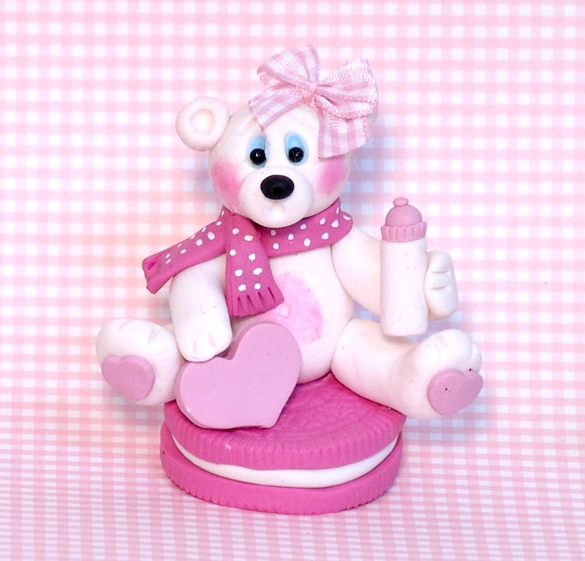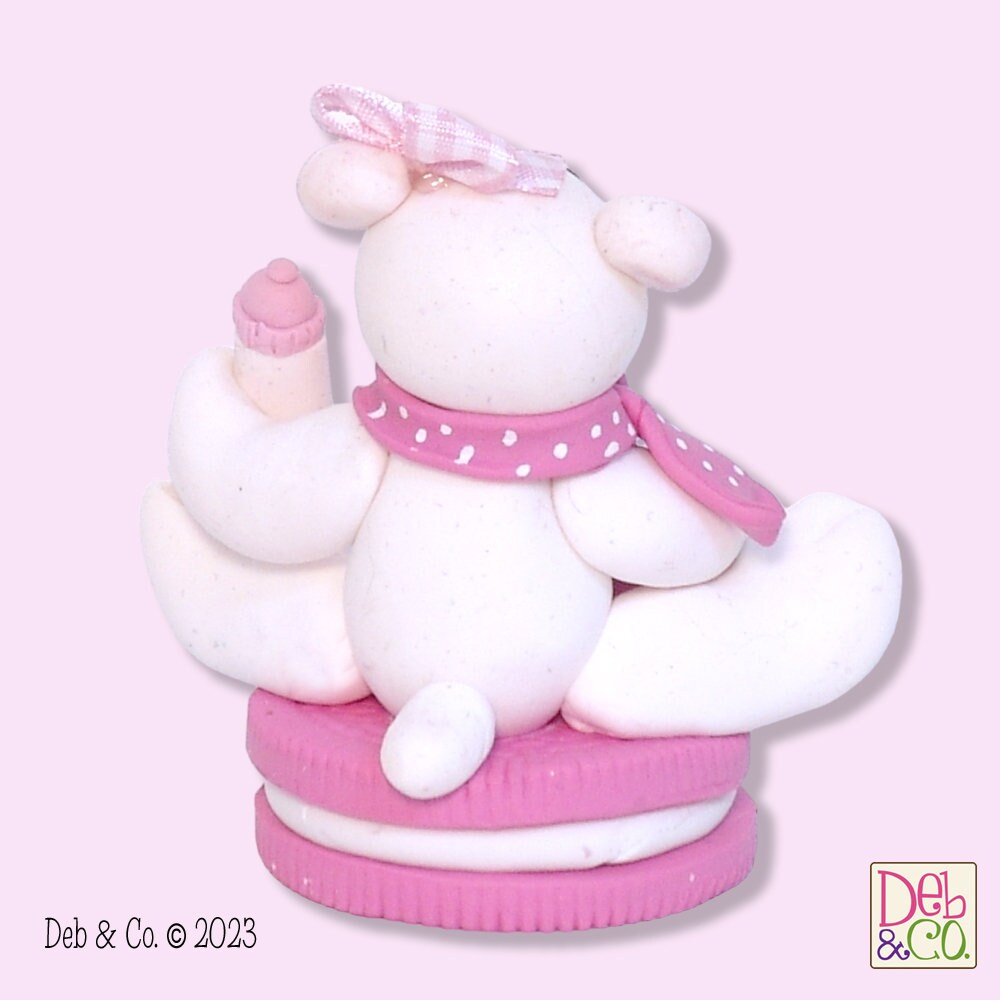 Polar Bear Sitting on Cookie Baby's 1st Christmas - Handmade Polymer Clay Personalized Christmas Figurine / Ornament