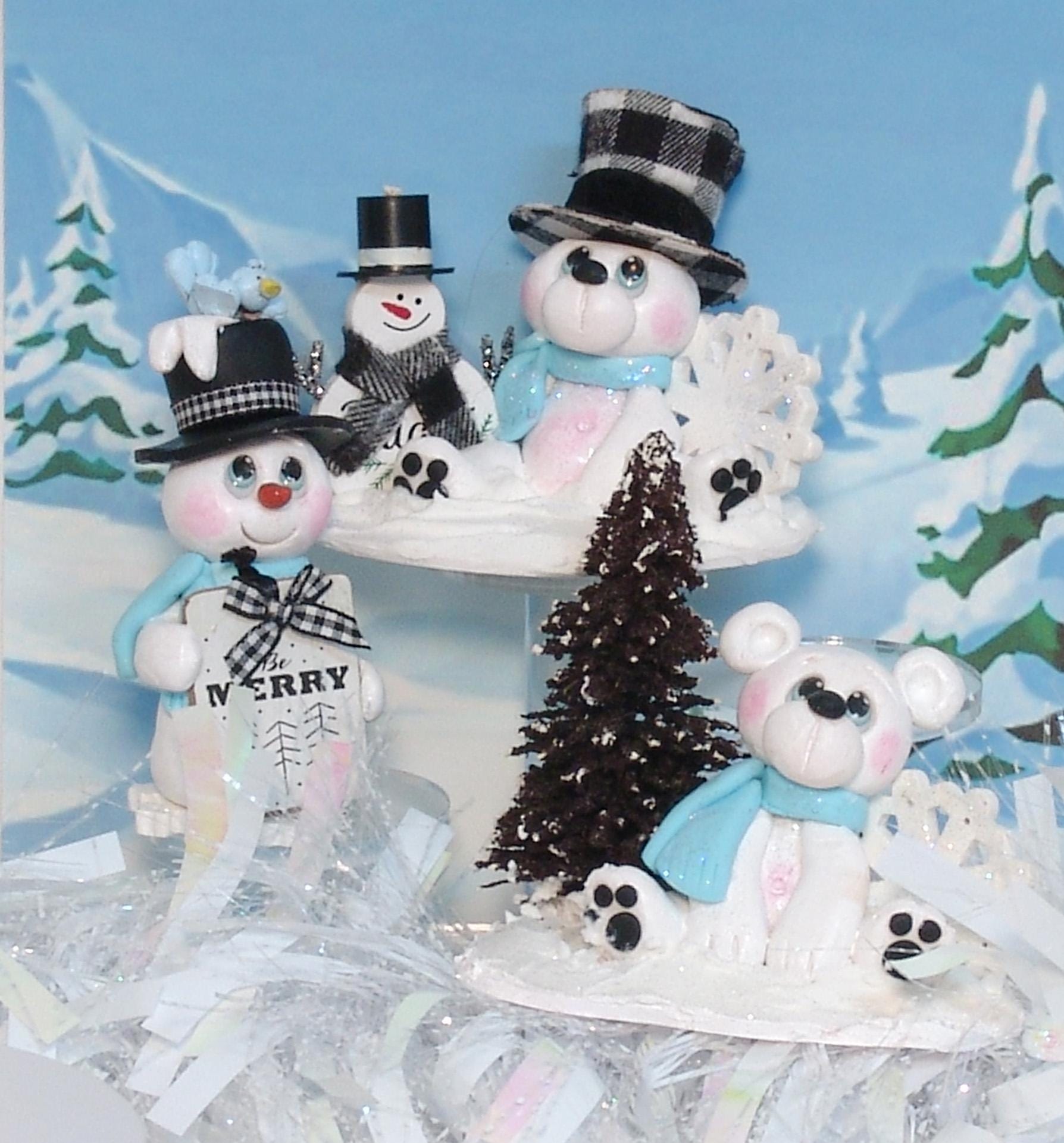 Polar Bear with Christmas Tree and Snowflake Figurine - Personalized Ornament Tiered Tray Decor