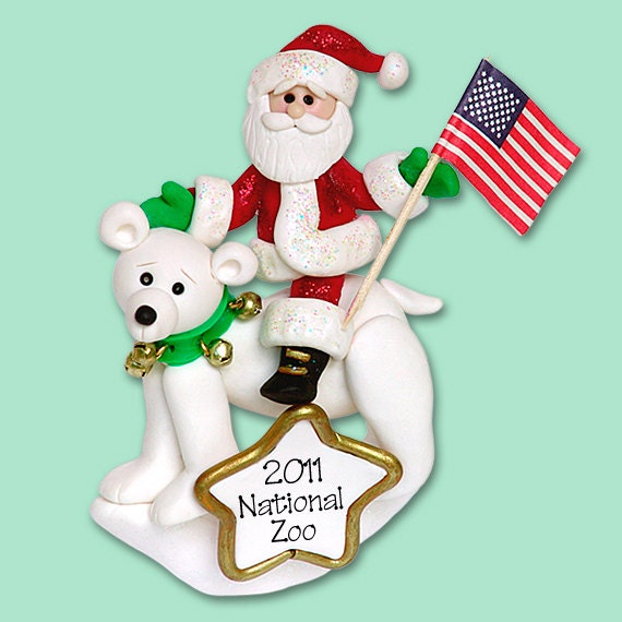 Santa on Polar Bear Patriotic HANDMADE POLYMER CLAY Personalized Christmas Ornament