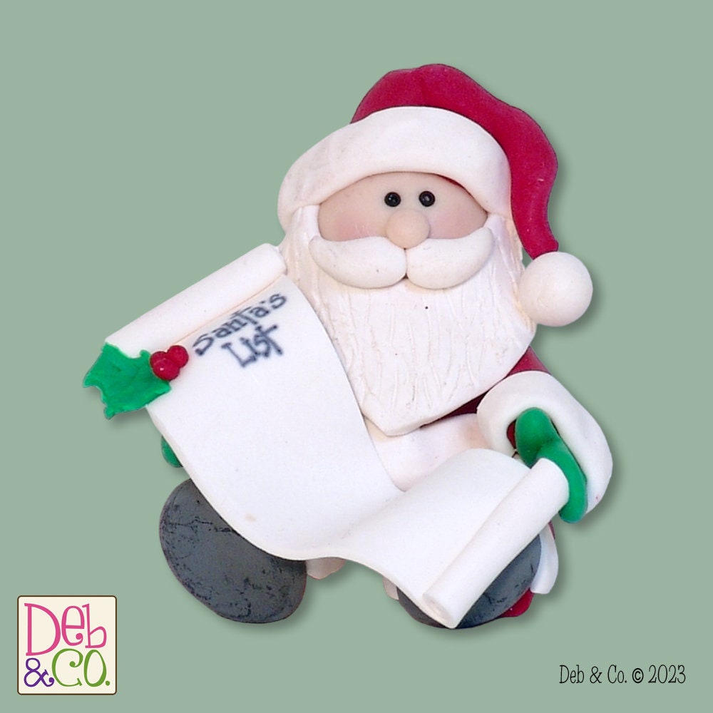 SANTA with List - HANDMADE POLYMER Clay Personalized Christmas Figurine