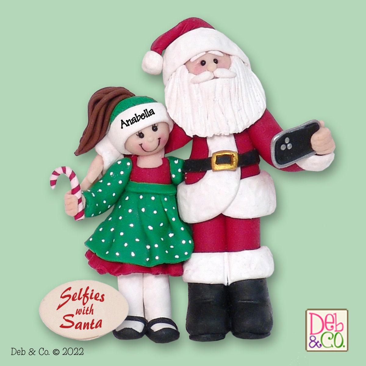 Selfies with Santa HANDMADE POLYMER CLAY Personalized Christmas Ornament - Girl with Santa