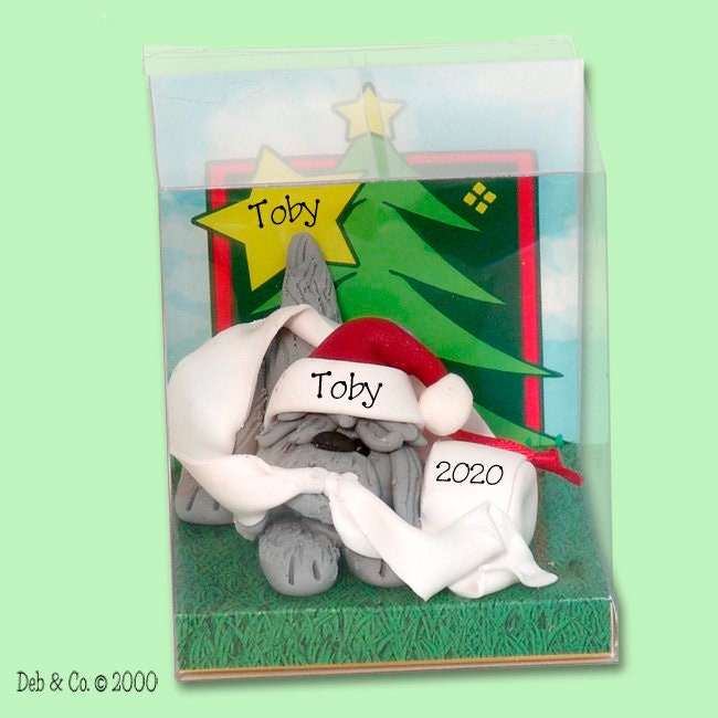 Shaggy Gray Dog with Toilet Paper HANDMADE Polymer Clay Personalized Christmas Ornament , Customized Ornaments
