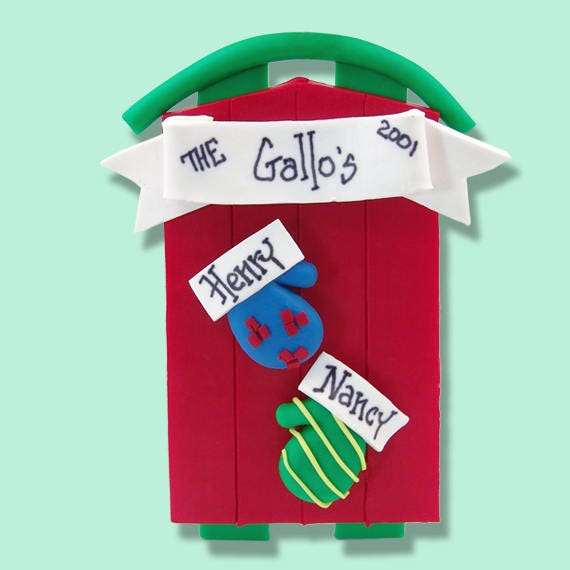 Sled with Mittens Family of 2 Couples Ornament HANDMADE POLYMER CLAY Personalized Christmas Ornament