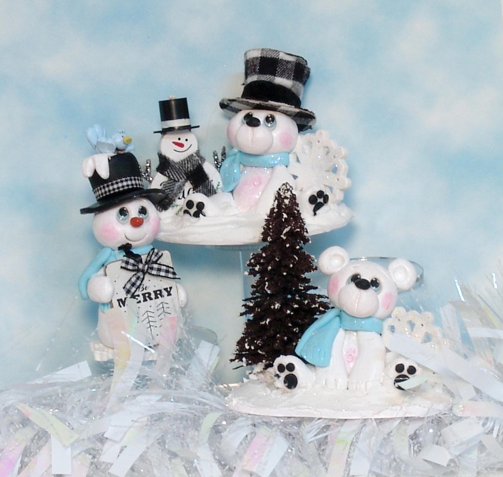 Snowman Figurine with sign and Bluebird - HANDMADE Polymer Clay Figurine