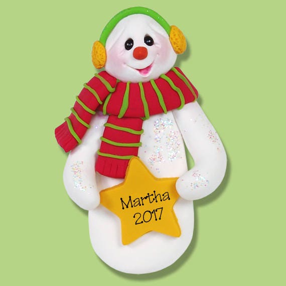 Snowman with Star Handmade Polymer Clay Personalized Ornament - Limited Edition